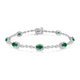 A charming emerald and round cut diamond precious flexi bangle, this offers beauty and elegance to the wrist. It features an open-ended center, with a pear shape mount on either end. Each of these mounts is adorned by a pear...