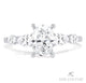 This stunning engagement ring features a 14K yellow gold shank paired with a white gold head showcasing a scalloped hidden halo design. The diamond pave band sparkles with .90 carats of diamond accents, beautifully enhancing the brilliance of the center...