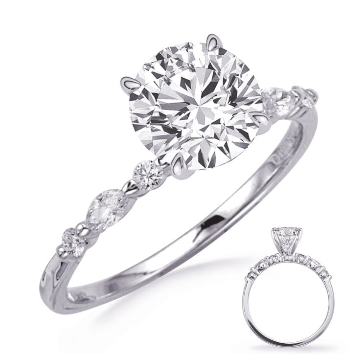 14K White Gold Marquise & Round Diamond Engagement Semi-Mount