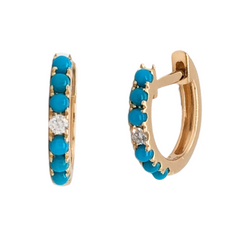 Experience the perfect marriage of luxury and style with our 14K Gold Turquoise & Diamond Huggies. These stunning earrings feature prong set cabochons of bright turquoise and .03CTW of sparkling diamonds, all set in sleek 14K yellow gold. Elevate any outfit with the effortless elegance of these huggies. Stop into Harris Jewelers of greater Albuquerque and find the perfect jewelry for your style. Our Rio Rancho jewelry store features so many different options, you will be able to find something for every occasion and taste.