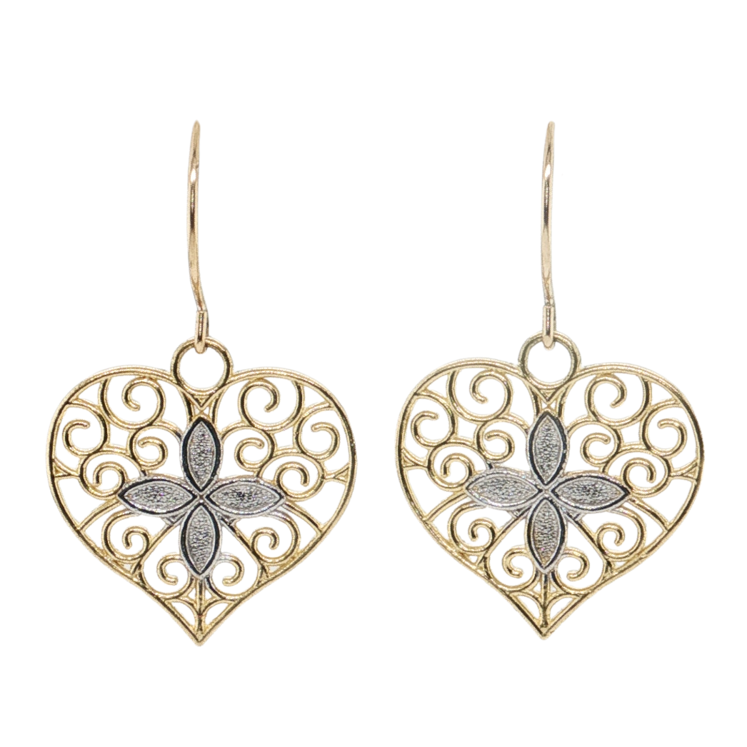 14kt Yellow Gold Filigree Heart French Wire Earrings