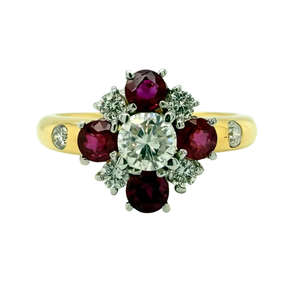Estate 18kt Two Toned .84ctw Ruby .28ctw Diamond Ring