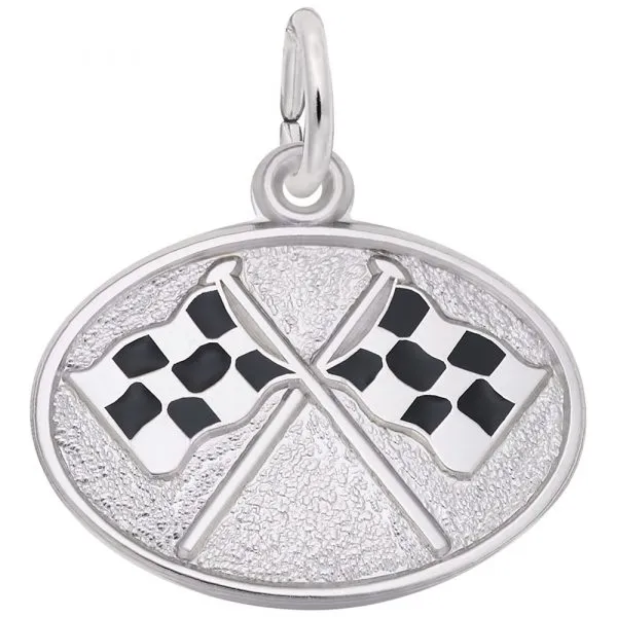 Hit the black top or dirt with this Racing Flags Oval Disc Charm. This item recognizes your need for speed. Available in silver and gold.