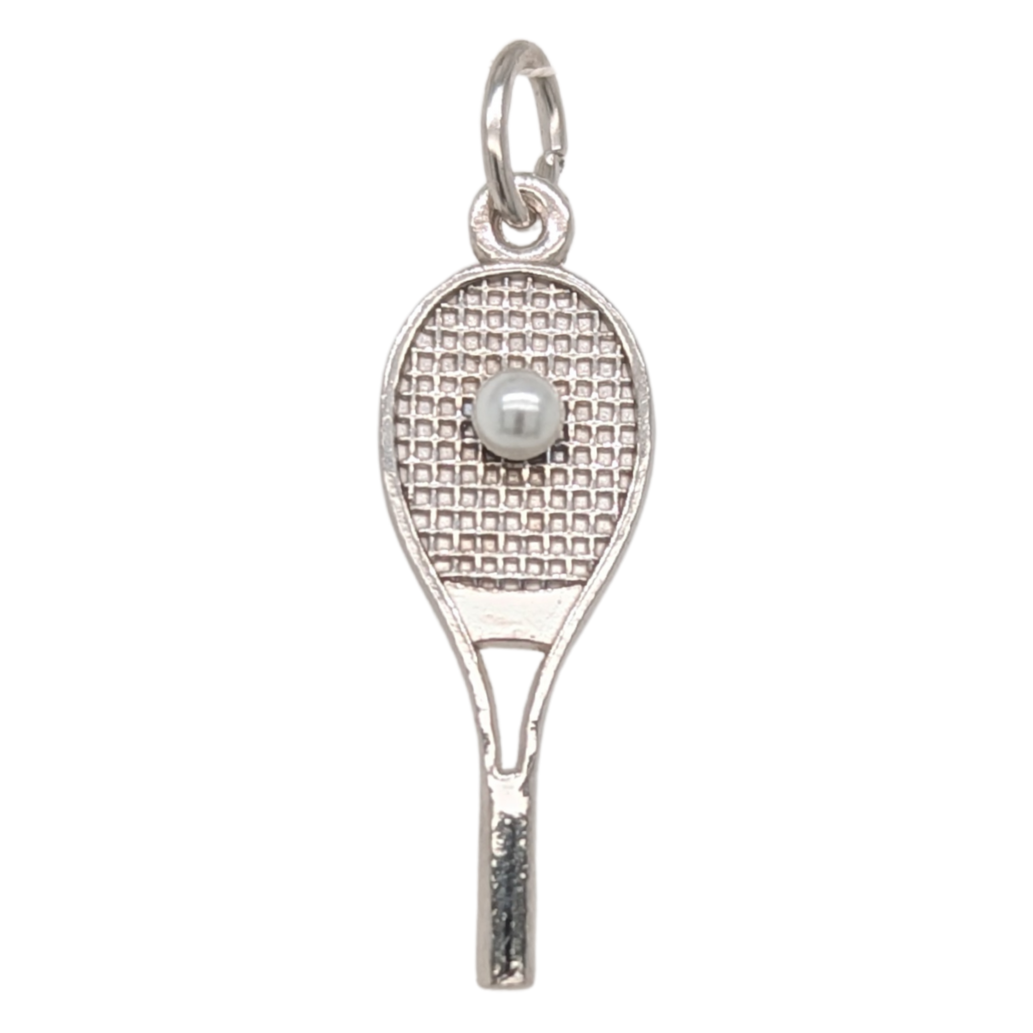 Sterling Silver Tennis Racket with Pearl Charm
