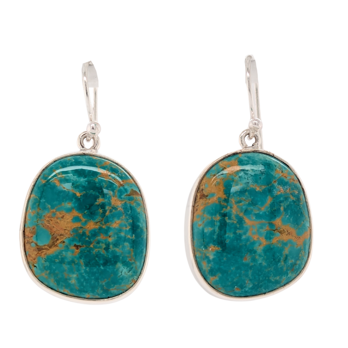 Elevate your style with these exquisite Sterling Silver Tyrone Turquoise Earrings. Each pair features genuine Tyrone turquoise gemstones with stunning color variations, meticulously bezel-set in pure sterling silver. The secure hook-style clasps ensure comfortable all-day wear while showcasing these southwestern treasures. A perfect statement piece that transitions effortlessly from casual to elegant occasions. Visit these earringss at Harris Jewelers of greater Albuquerque and see our wide selection of turquoise jewelry and more.